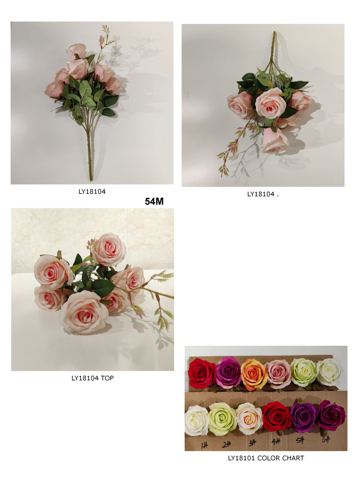 6 flower rose bush LY18104Product Item:LY1810454cm(46cm main),dia 25cmColor: Packing and CBM: 24/144 , 0.31CBMMaterial:Polyester,PP,Iron6 flower rose bush LY18104 Inquiry Send Email