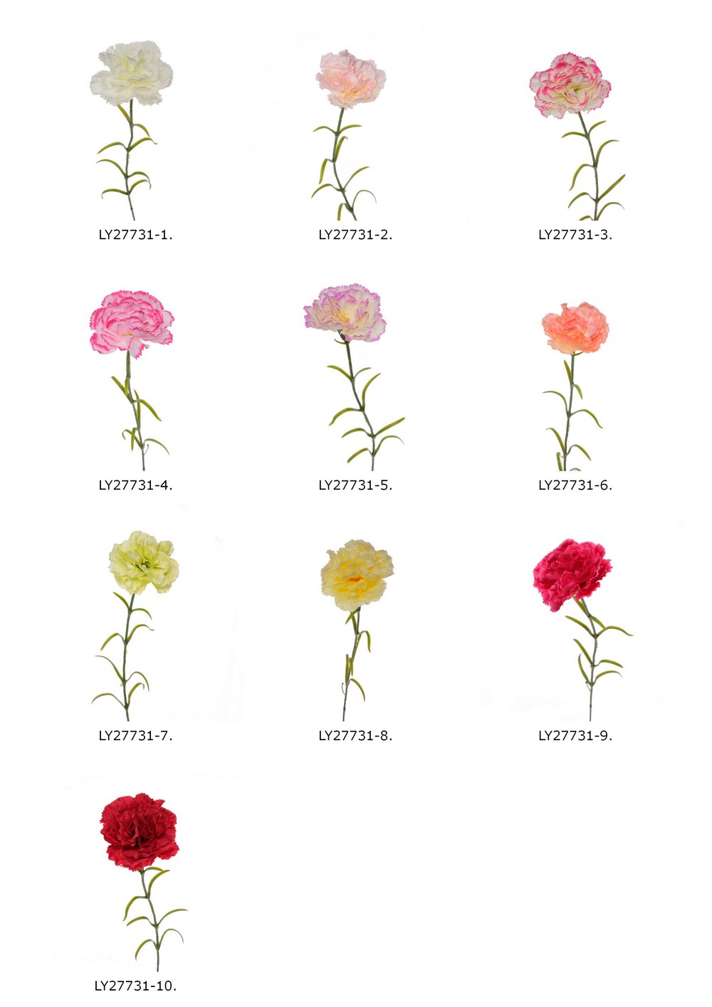 60cm single carnation LY27731Product Item:LY2773160cm,26gColor: as picturePacking and CBM: 96/768 , 0.32CBMMaterial:POLYESTER,PP,IRONsingle carnation Inquiry Send Email